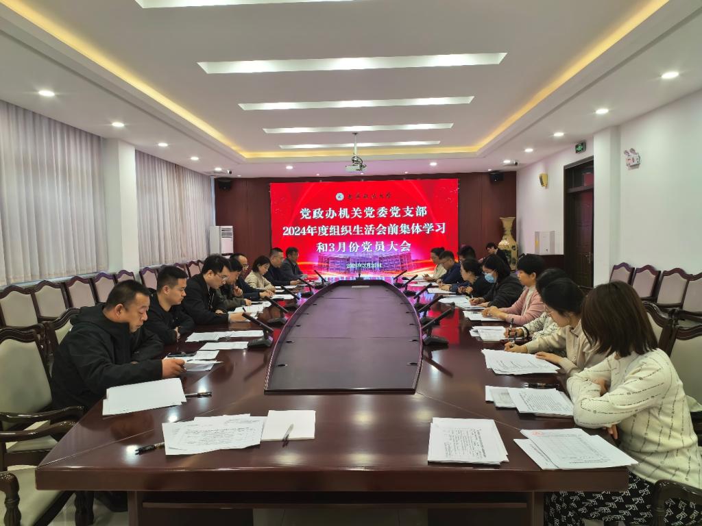 3月25日上午,党政办机关党委党支部在机关楼120(东)会议室召开党员大会,开展组织生活会前集体学习和3月份集体学习,启动部署开展深入贯彻中央八项规定精神学习教育。党支部书记李宁主持会议,校党委书记孟劲松以普通党员身份参加会议。