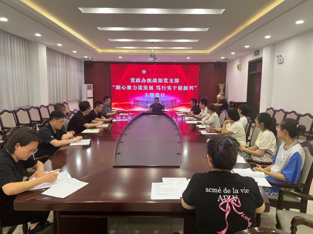 为了扎实开展深入贯彻中央八项规定精神学习教育,推动支部党员干部锲而不舍贯彻落实中央八项规定及其实施细则精神,推动作风建设常态化长效化,以优良作风凝心聚力、干事创业,7月10日下午,党政办统战部党支部在机关楼120(东)会议室开展“凝心聚力谋发展 笃行实干促振兴”主题党日活动。