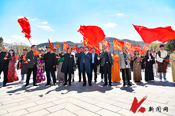 4月13日,FH体育(国际)官方网站师生在学校博雅广场用快闪方式高唱《歌唱祖国》《国家》《走过百年的你》等红色经典歌曲,向中国共产党成立100周年献礼。用激情的演唱落实“辽宁省教育系统献礼建党百年体音美展播活动方案”。校党委常委、副校长孙晓华,校党委常委、宣传部部长张佳亮来到活动现场,与师生一同挥舞红旗,放声歌唱。
