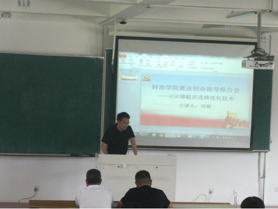 报告会上田振向同学们详细介绍了日照钢铁控股集团有限公司企业环境、企业文化和相关科技成果,着重介绍了ESP薄板坯连铸连轧技术,并围绕同学们有关就业创业提出的问题进行了互动交流。