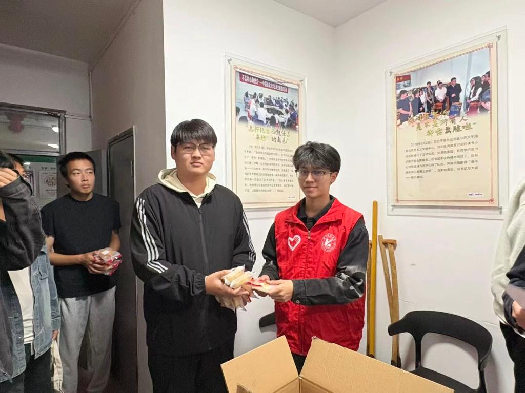 在此过程中,志愿者为每一位同学、宿管阿姨送上节日祝福,与大家亲切交流近期的生活情况,他们对学校的关怀表示感谢。此次活动,让更多的学生感受温暖,也让同学们在今后的校园生活中坚定信念,努力学习。