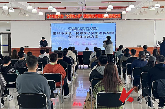 仪式上,宣读了材冶学院学生材控党支部在鞍山市第38中学设立“贫寒学子突出进步奖学金”的助困帮扶计划。材冶学院20名志愿者对接38中学20名家庭经济困难学生,为他们捐赠书包等学习用品,后续将为其提供学业以及生活上的精准帮扶。