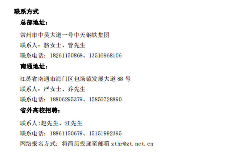 中天钢铁招聘信息