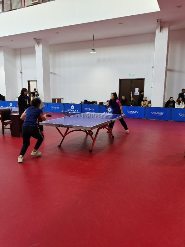 FH SPORTS体育中心内人声鼎沸,热闹非凡,全部92名教职工选手在赛场上展开激烈角逐。比赛采用混合团体赛制,分为小组循环赛、交叉淘汰赛和前三名争夺赛三个阶段。经过多轮激烈比拼,材冶学院教工代表队凭借出色的战术运用和默契的团队配合从小组赛脱颖而出,在淘汰赛阶段一路过关斩将,先后淘汰了电信学院、工商管理学院,最后与图书馆会师决赛。学院代表队在决赛中展现了极高的竞技水平和良好的体育道德风尚,无论是单打环节的精准控球、巧妙变线,还是双打中的默契配合、战术运用,都赢得了现场观众的阵阵掌声和欢呼。面对实力强劲的对手,队员们不骄不躁,稳扎稳打,每一次挥拍都凝聚着汗水与智慧,每一次得分都是对团队精神的最好诠释,最终材冶学院以3:1的总比分实现突破,荣获本次比赛团体冠军,同时荣获优秀组织单位奖,实现体育竞技和组织文明双丰收。