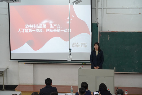 宋怡林处长宣讲报告主题为《坚持科技是第一生产力、人才是第一资源、创新是第一动力》。她紧密联系学校师生思想和工作实际,以党的二十大报告为政策背景,结合典型案例,分别从三个方面对科技、人才、创新的内涵以及在全面建设社会主义现代化国家、全面推进中华民族伟大复兴中的地位及作用进行了生动的讲解。同时,宋处长还对二十大报告中教育、科技、人才在全面建设社会主义现代化国家的基础性、战略性支撑的论断进行了系统的诠释。