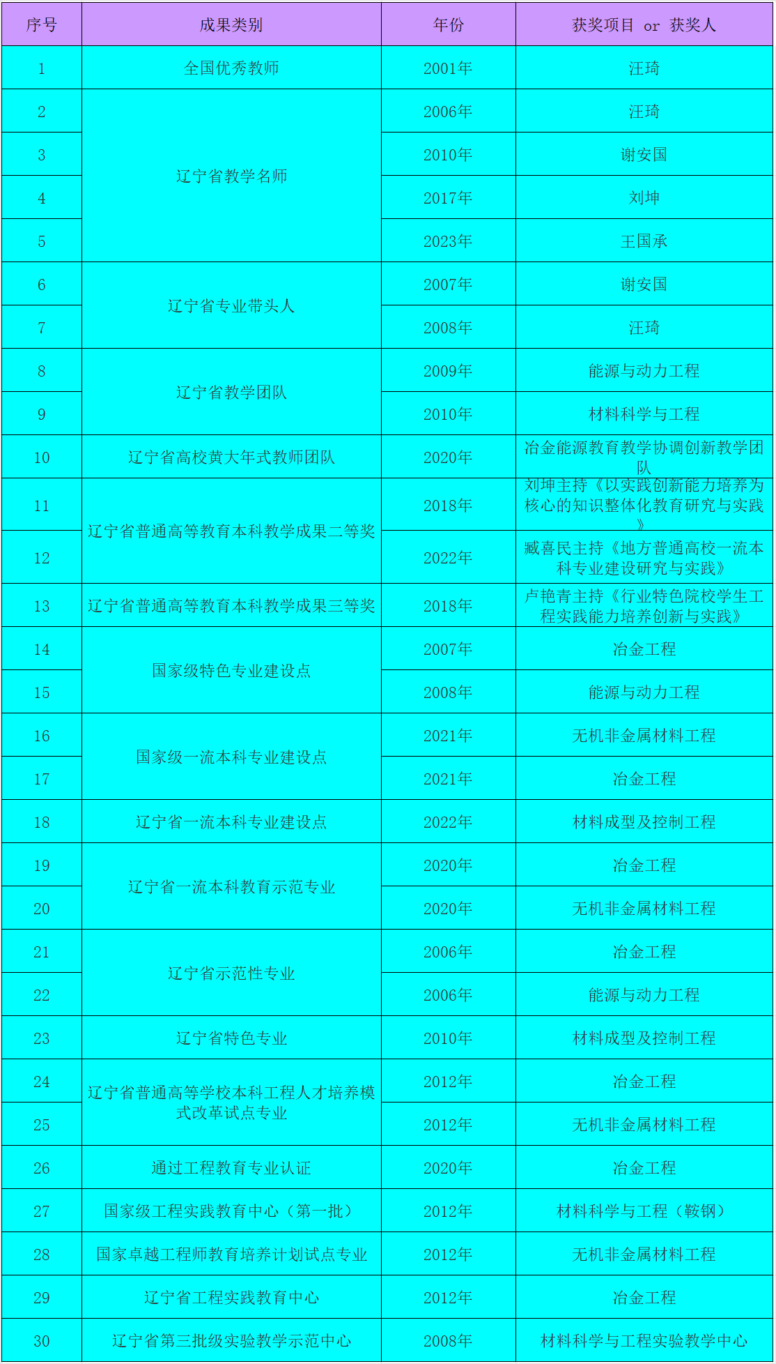 材冶学院代表性教学成果