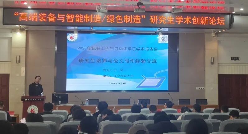 11月9日,机械学院2025年“高端装备与智能制造/绿色制造”研究生学术创新报告会在图书馆报告厅顺利举行。本次会议依托学院六十余年冶金机械学科积淀与辽宁省优势特色学科建设基础,面向“机械工程”学术型及“机械”专业型硕士研究生,搭建了高水平教学研讨与学术交流平台,助力研究生对接产业与科研前沿。