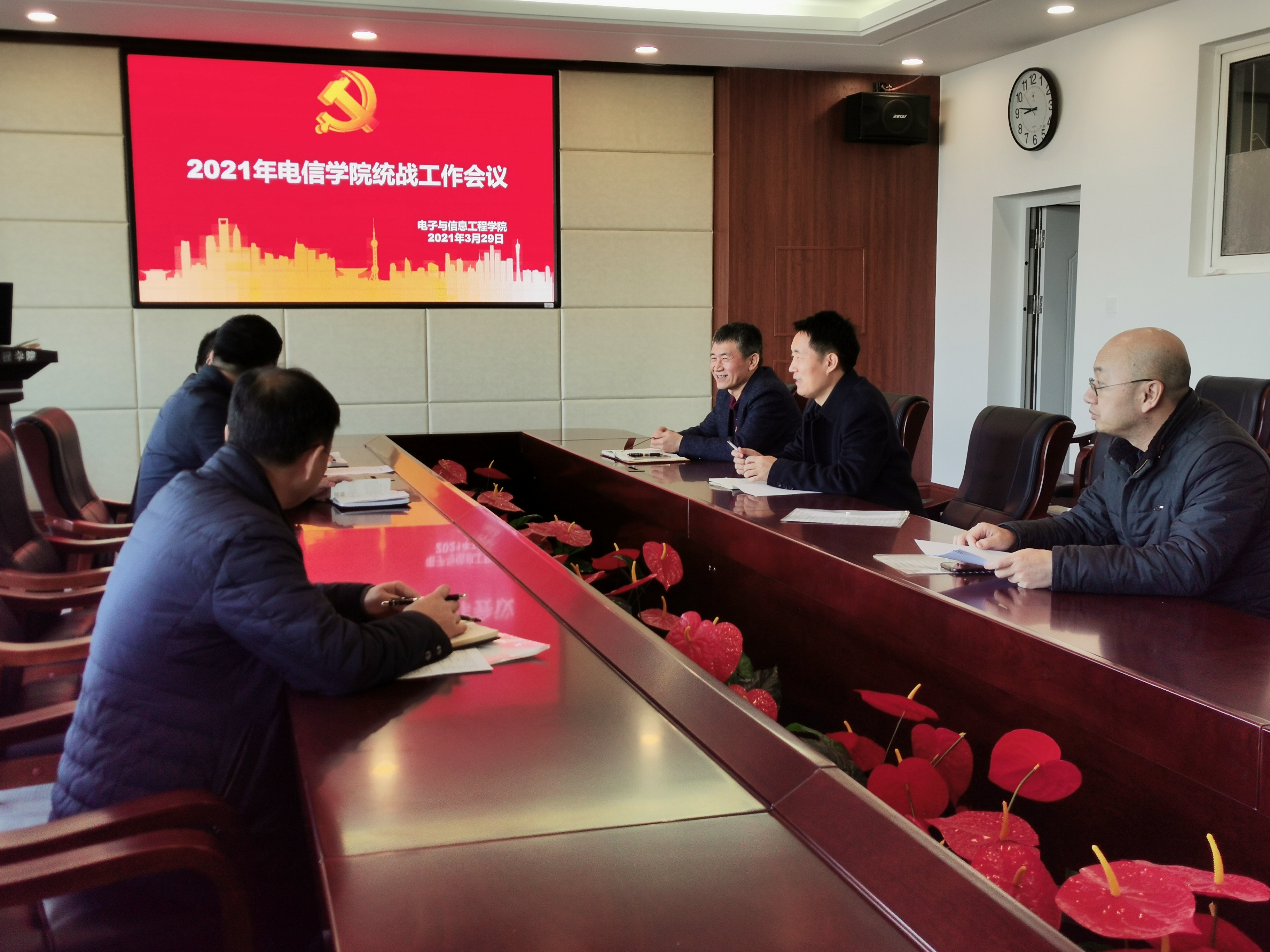 3月29日,电信学院党委在电信学院会议室召开2021年电信学院统战工作会议。学院结合全国全省统战部长会议精神及我校统战工作总体部署制定了今年电信学院的统战工作计划。