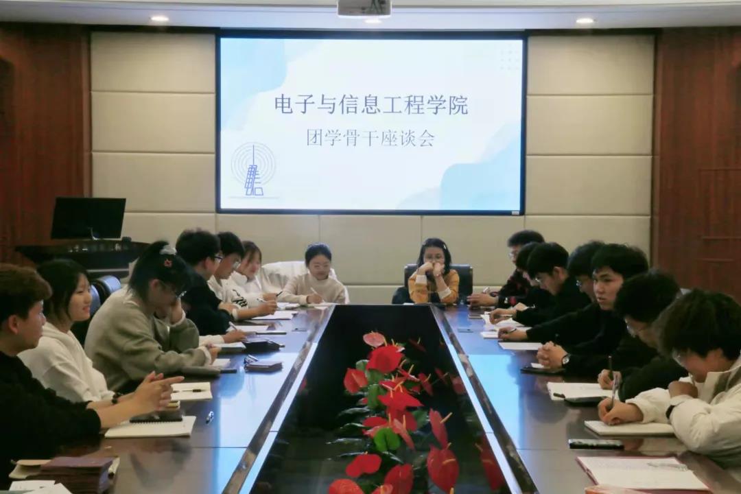 为深入推进学院党史学习教育,倾听学生心声,帮同学们“办实事、解难题”。11月10日,电信学院于博闻楼三楼会议室召开团学骨干座谈会。学生骨干苑云龙主持,团委书记孙倩、21级团学骨干参加。
