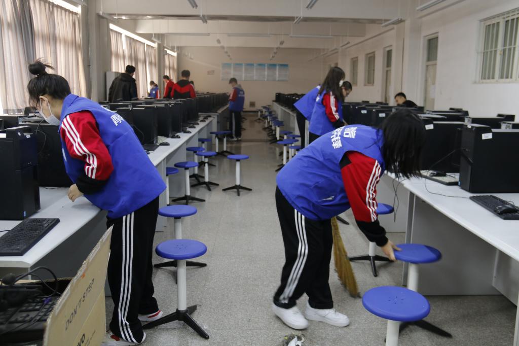 升旗仪式结束以后,学生们用实际行动践行雷锋精神,自发组织参与志愿服务,认真清扫博闻楼各个办公室、会议室、实验室等,同时也对博闻楼周边进行清扫,捡拾垃圾烟头纸屑等杂物。