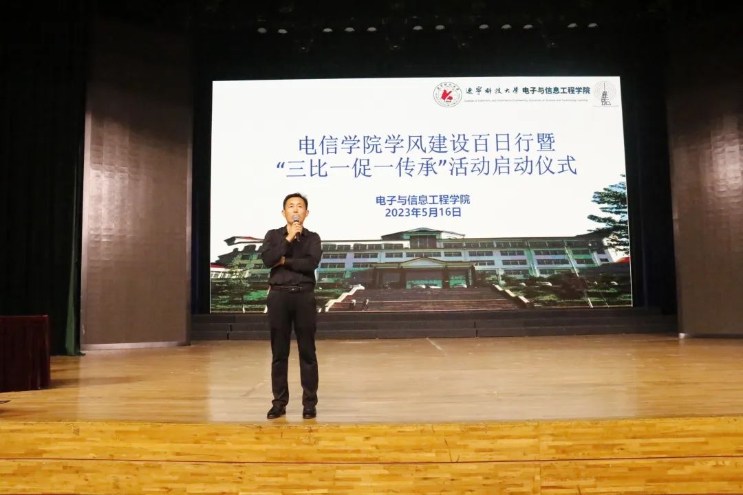 为深入学习贯彻习近平新时代中国特色社会主义思想,落实《FH体育(国际)官方网站进一步加强内涵建设 服务辽宁全面振兴新突破三年行动方案》要求,加强学风建设和文化建设,营造良好的育人环境,5月16日,电信学院于校礼堂举行学风建设百日行暨“三比一促一传承”活动启动仪式,此次活动由电信学院党委书记王会立主持,电信学院21、22级全体学生参加。