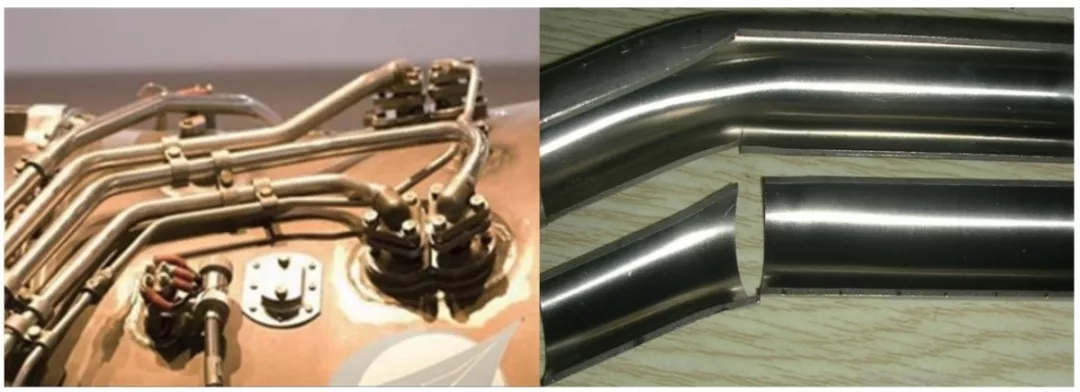 航空发动机外部设有数以百计的液压导管,为了推重比大都采用密度较低的钛合金等材料,对表面质量要求很高。由于空间狭小,液压导管设计成各种曲率半径不同的空间弯管。现有的冷弯工造成液压导管内表面缺陷及引发流场、速度场、压力场的梯度变化,产生涡流、喘振等现象,从而使航空发动机工作不稳定、产生振动和噪音,这是引发失效甚至导致液压导管疲劳断裂重大事故的主要根源之一。