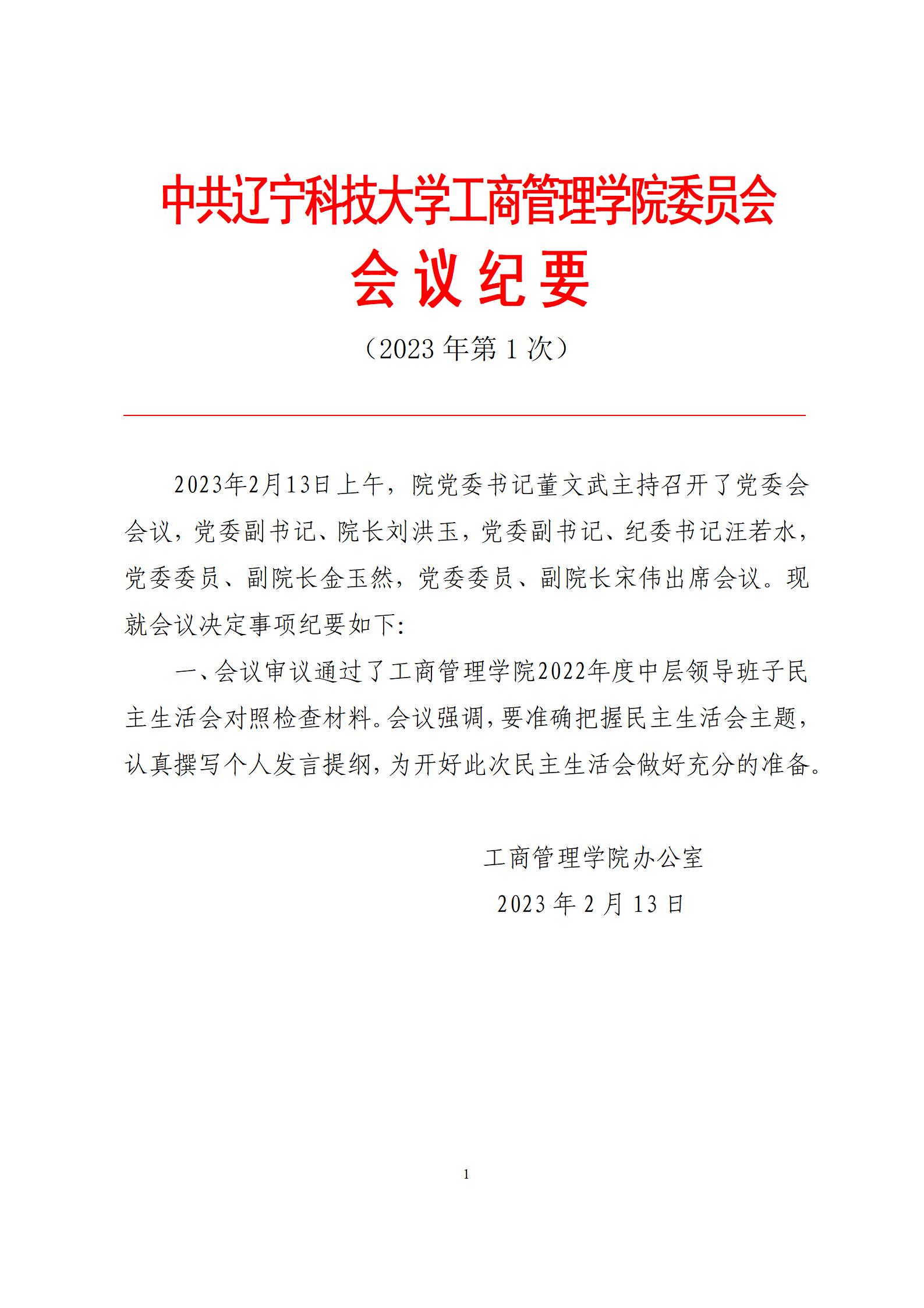 中共FH体育(国际)官方网站工商管理学院委员会会议纪要(2023年第1次)