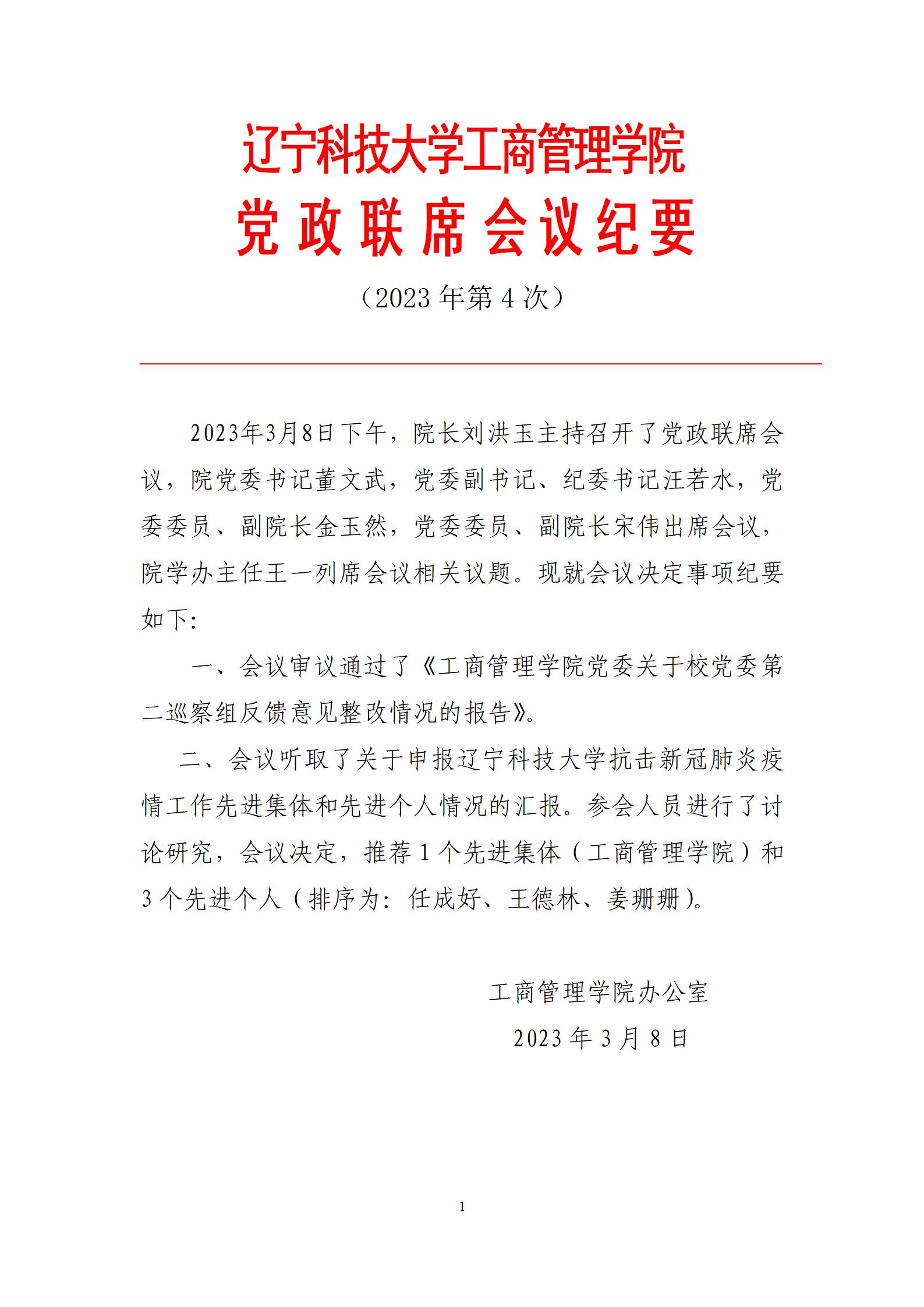 FH体育(国际)官方网站工商管理学院党政联席会议纪要(2023年第4次)