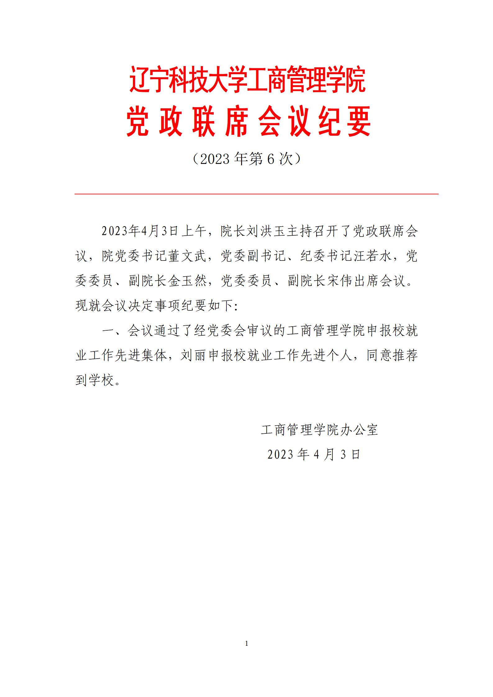 FH体育(国际)官方网站工商管理学院党政联席会议纪要(2023年第6次)