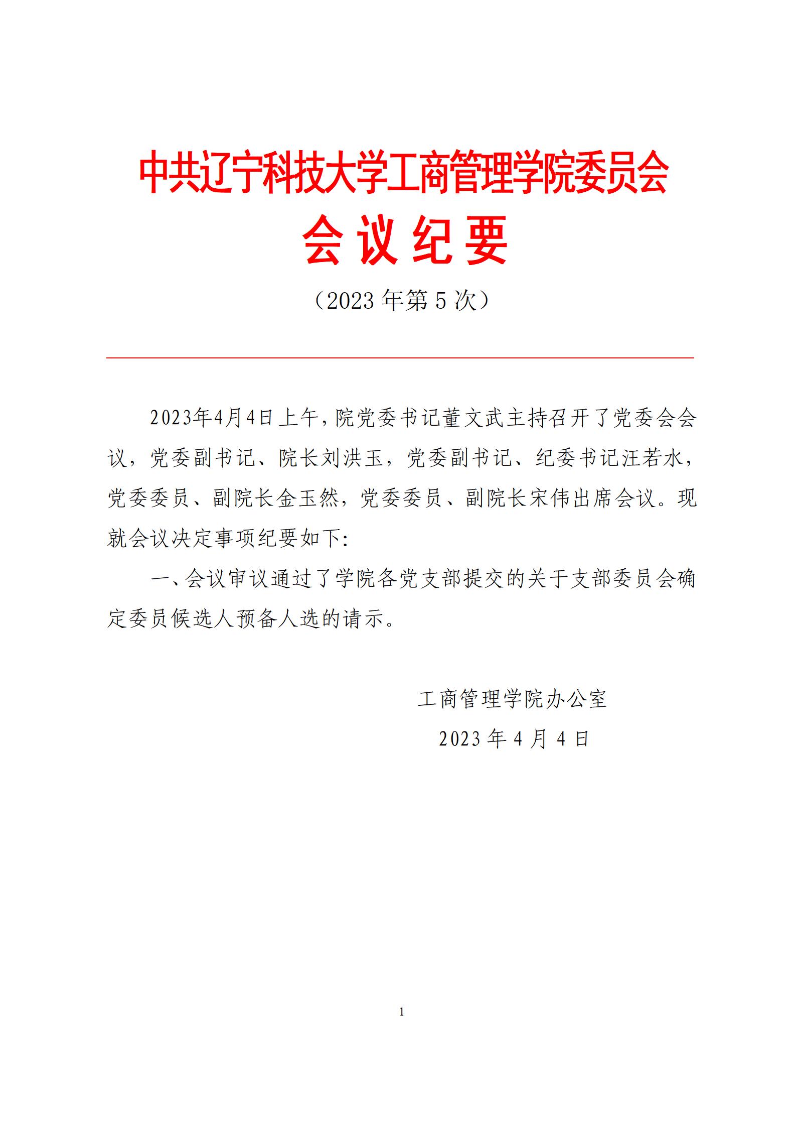 中共FH体育(国际)官方网站工商管理学院委员会会议纪要(2023年第5次)