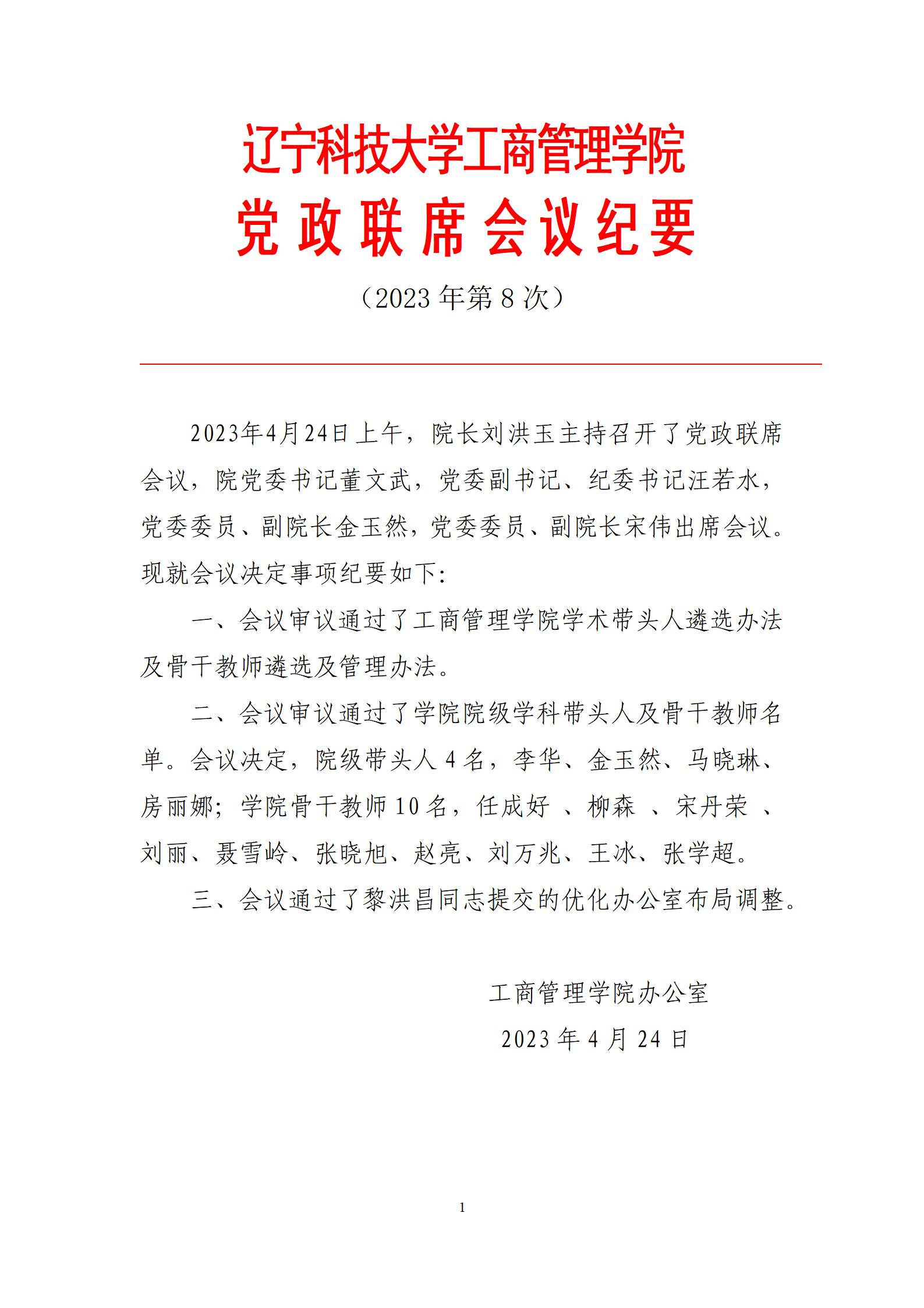 FH体育(国际)官方网站工商管理学院党政联席会议纪要(2023年第8次)