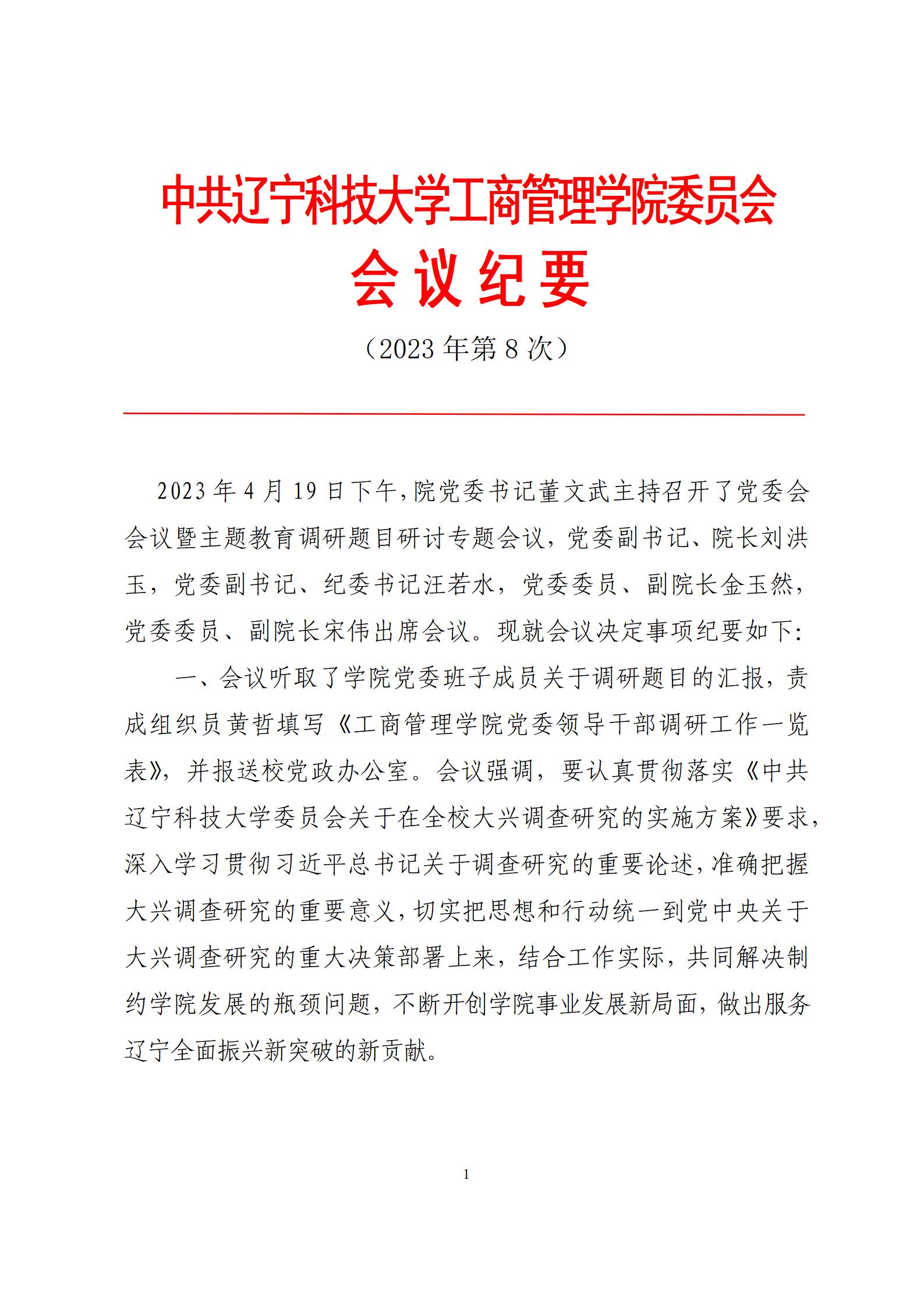 中共FH体育(国际)官方网站工商管理学院委员会会议纪要(2023年第8次)