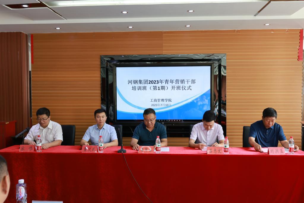 7月10日上午,由我院承办的河钢集团2023年青年营销干部素质提升启动仪式顺利进行。河钢集团销售总公司副总经理薛军安、综合办一级主办苏志文,学院党委书记董文武、院长刘洪玉、副院长宋伟出席开班式。共有24名来自河钢集团销售总公司的学员参与了此次培训。