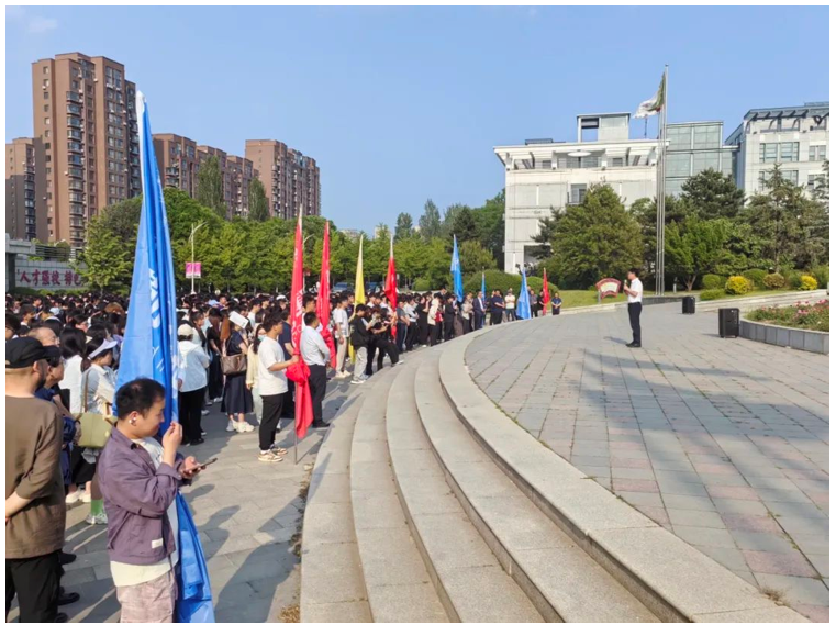 随后,随着教学楼内消防警报响起,师生们迅速进入应急状态,用湿毛巾捂住口鼻,弯腰低姿,沿预定逃生路线快速撤离,整个过程紧张有序。在安全抵达博雅广场集结点集结完毕后,校保卫处工作人员现场开展灭火器使用教学,详细讲解操作步骤与注意事项。