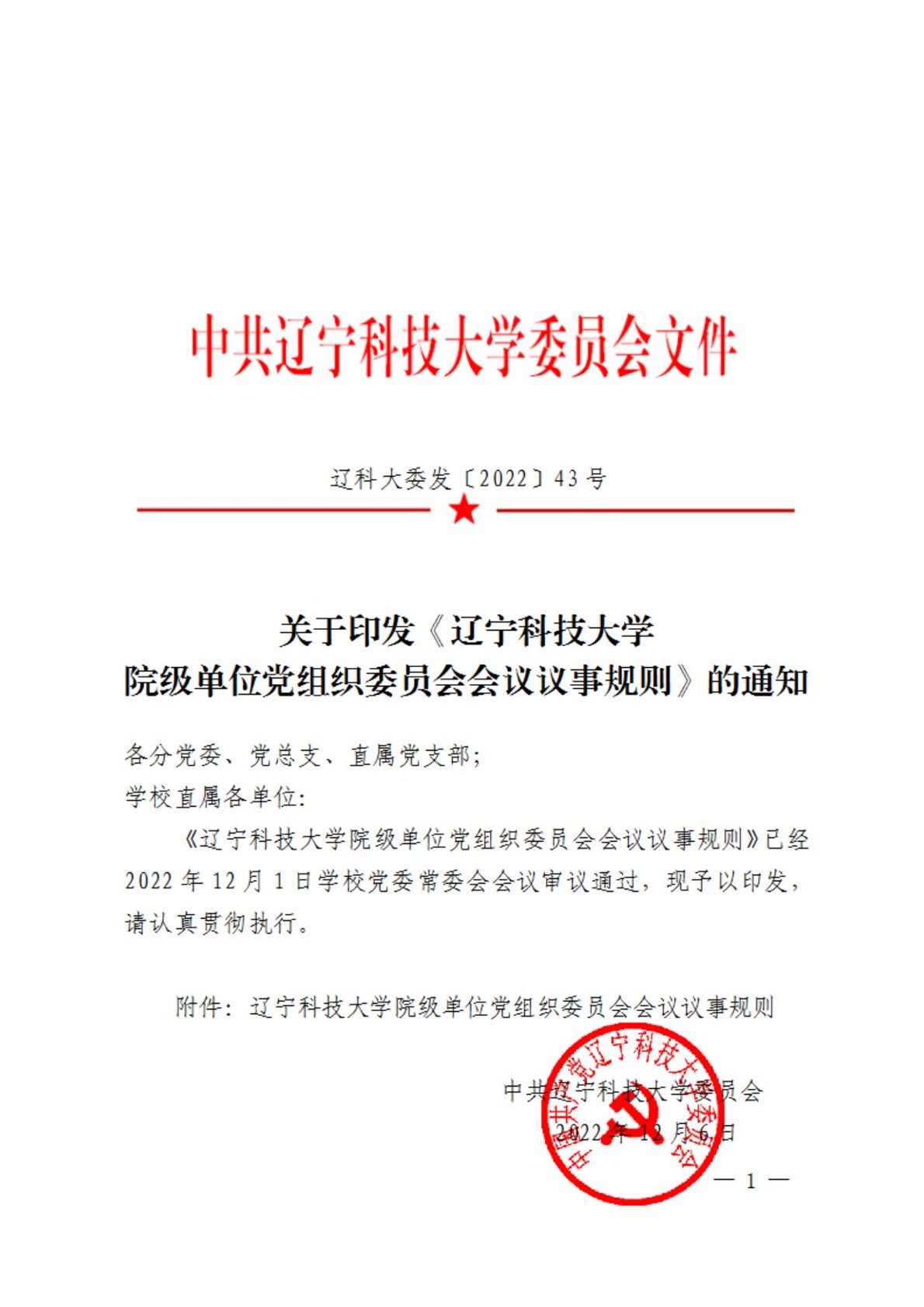 关于印发《FH体育(国际)官方网站院级单位党组织委员会会议议事规则》的通知