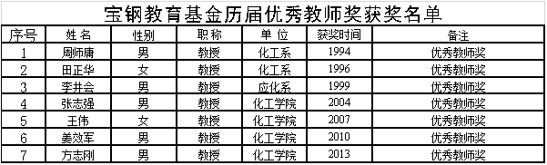 宝钢教育基金历届优秀教师奖获奖名单
