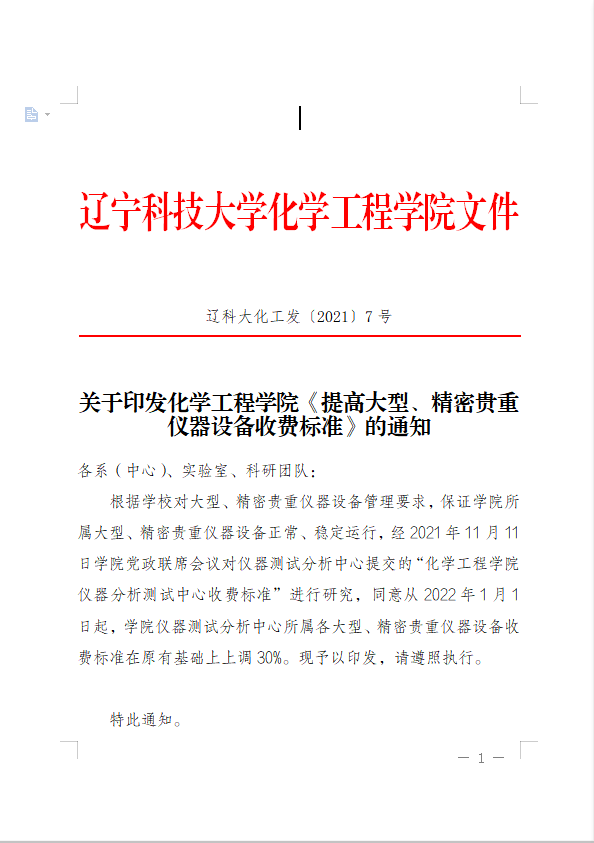 FH SPORTS化工发〔2021〕7号 关于印发化学工程学院《提高大型、精密贵重仪器设备收费标准》的通知.doc