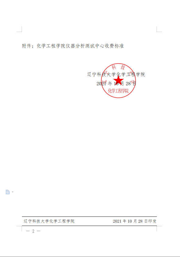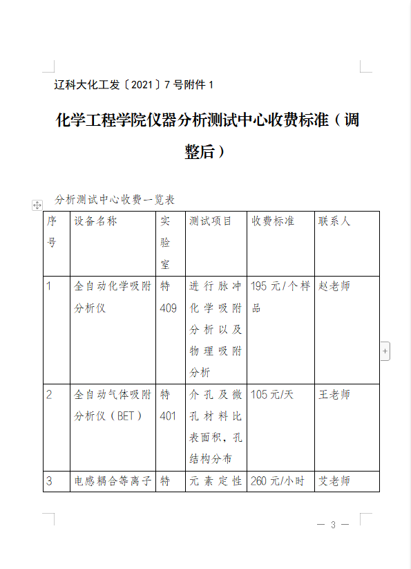 关于印发化学工程学院《提高大型、精密贵重仪器设备收费标准》的通知