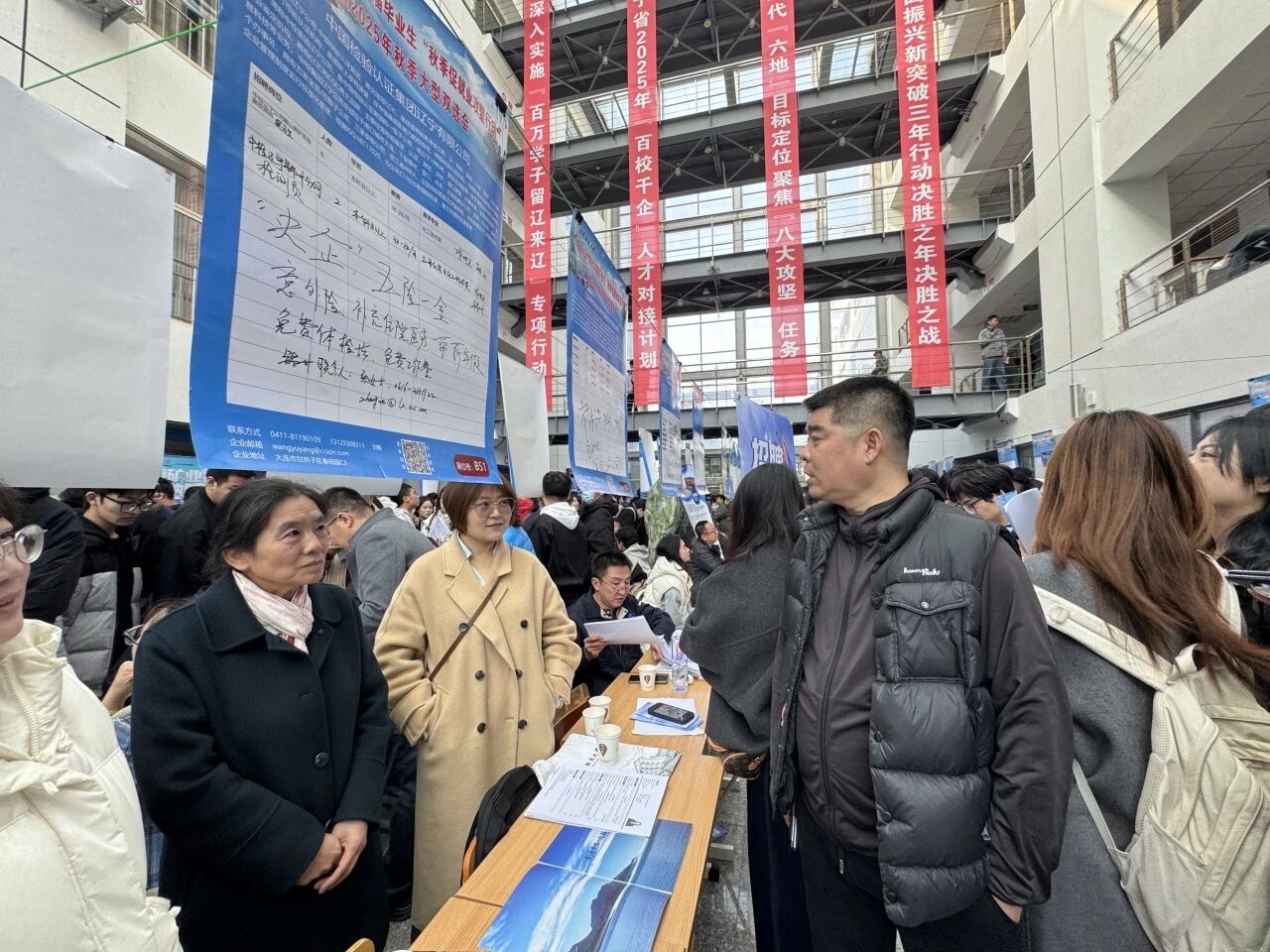 双选会现场氛围热烈,化工学院师生踊跃参与,与企业深入交流,精准对接用人需求,化工学院毕业生朝气蓬勃、准备充分,握着简历在各企业展位间往来穿梭,主动与招聘代表洽谈交流,展现出从容自信、专业务实的精神面貌。各大企业全心投入,细致讲解岗位要求与发展前景,竭力和学子达成精准的人才匹配、实现合作共赢。