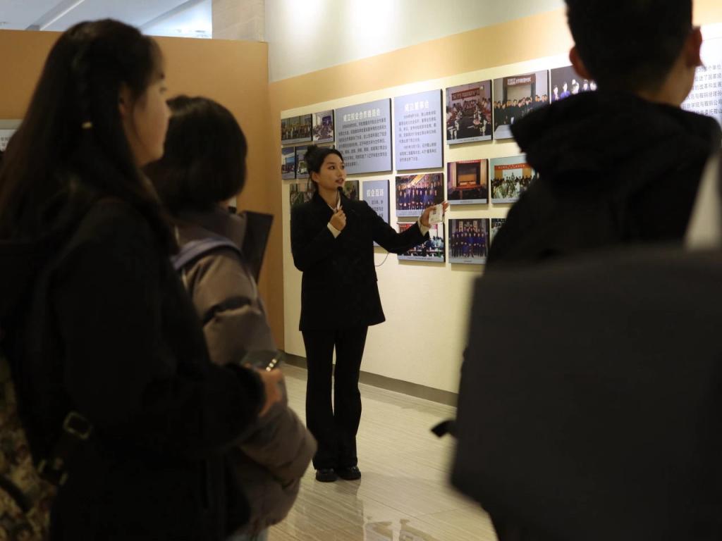 活动开始,在院学生会带领下全体2023级新生共唱校歌。随后,各新生班级依序在校史馆工作人员的讲解声下观看了学校展览。学校历史发展的时间清晰明了,伴随着讲解,同学们了解了我校悠久的办学历史、鲜明的办学特色和卓越的办学成就,对FH SPORTS“博学明德,经世致用”校训有了更深的体悟。当看到“航空母舰使用的海工钢、高铁使用的钢轨、嫦娥五号卫星使用的光学仪器组件”等科技产品都有FH SPORTS的身影时,同学们兴奋之情溢于言表,他们对我校硕果累累的育人史有了更深刻的认知。