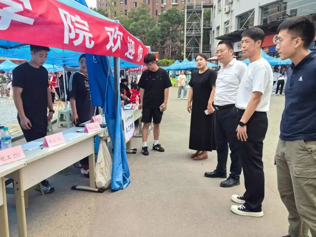 清晨,学院领导便来到迎新现场,检查指导迎新工作,向接待处的工作人员和志愿者们致以亲切问候,同时与新生及家长们热情交流,详细询问他们的报到情况,对新生的到来表示热烈欢迎,并鼓励新生们在大学期间努力学习、茁壮成长。