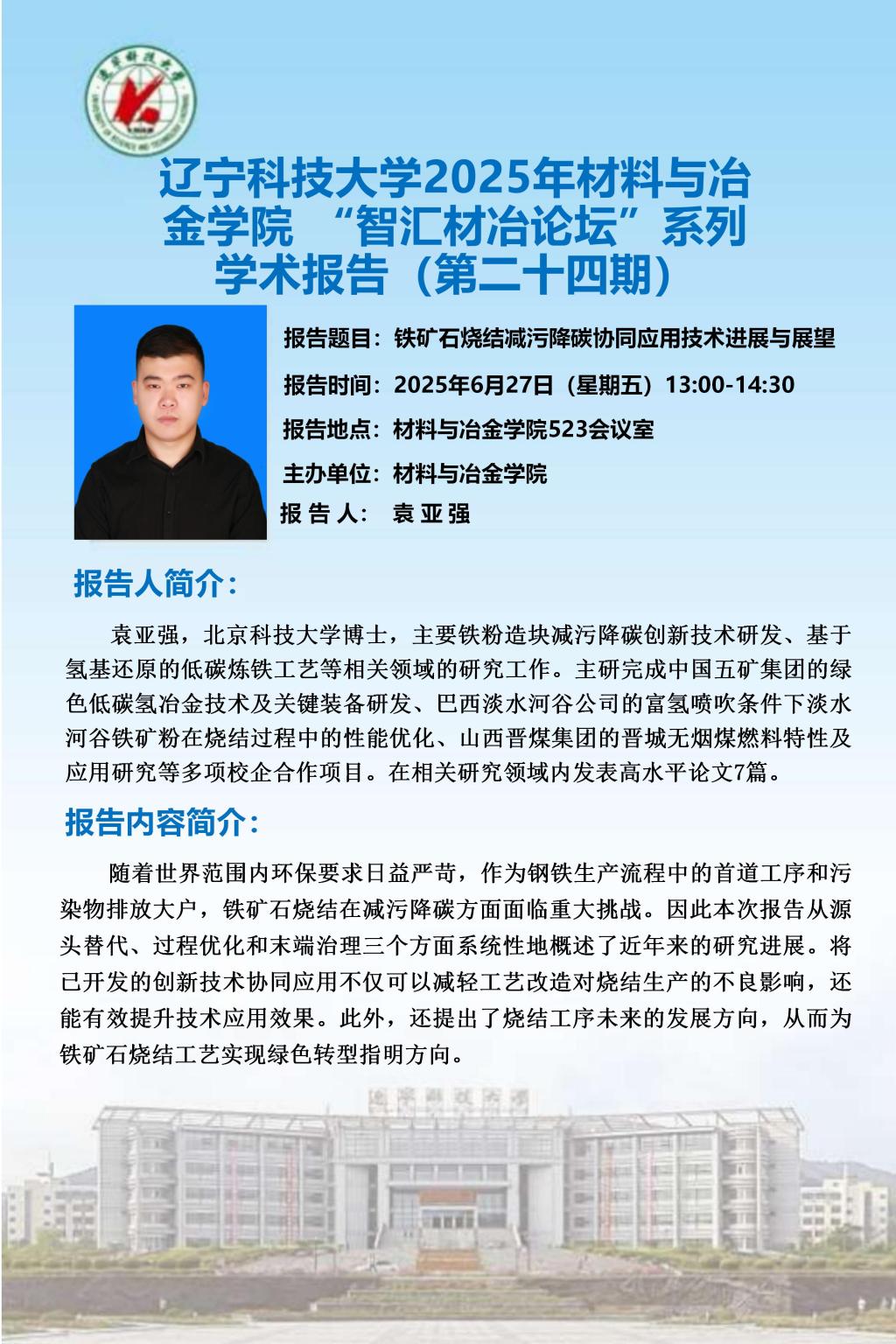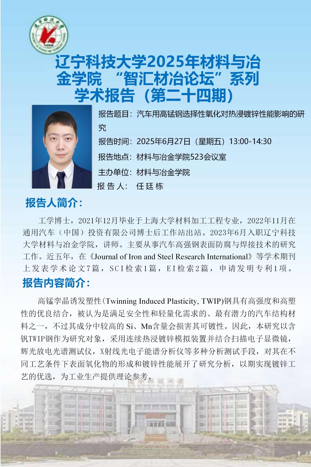 FH体育(国际)官方网站2025年材料与冶金学院 “智汇材冶论坛”系列学术报告 (第二十四期)