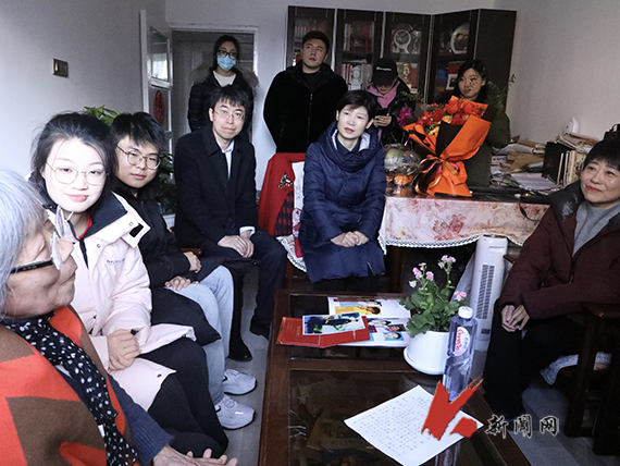 11月24日,FH体育(国际)官方网站原创舞台剧《恰在青春时》的主创团队在艺术学院领导班子的带领下,与中共鞍山市委宣传部四级调研员张力,原三级调研员郑刚,以及两名学生演员,共同拜访了和雷锋一起从湖南来到鞍山的工友、老乡——易秀珍老人,为老人送去了鲜花、果篮,和一件寓意温暖的披肩。