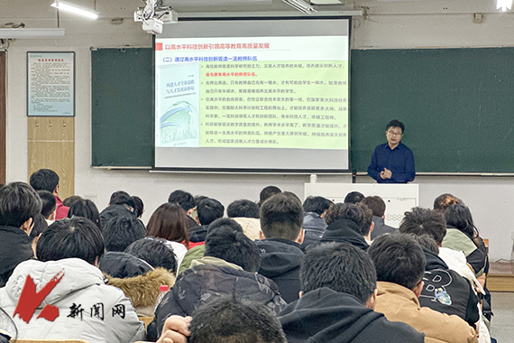 科技处副处长李晓教授在博学楼C212教室为机械工程与自动化学院、国际教育学院师生作题为《发挥科技创新引领作用,推动学校教育事业高质量发展》的专题宣讲报告。李晓从科技创新背景、以高水平科技创新引领高等教育高质量发展、以高水平科技创新支撑经济社会高质量发展、深入贯彻落实习近平总书记在新时代推动东北全面振兴座谈会上的重要讲话精神推动学校教育事业高质量发展四个方面,深入详尽地解读了习近平总书记重要讲话精神。李晓提出从“四个方面”下功夫,实现组织机制“四个转变”,破解科研“三个难题”,“三个坚持”推动产学研融合,组建新的科研机构等内容,为今后如何推进工作提供了宝贵借鉴。