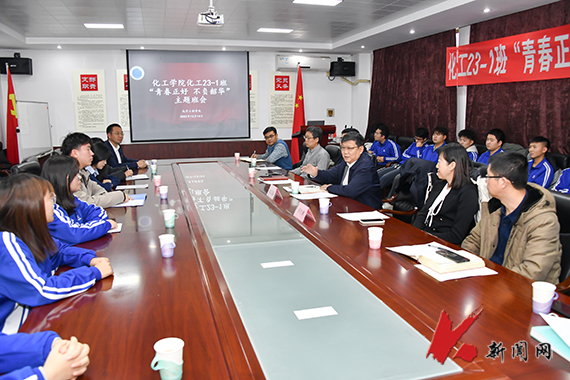 12月14日,FH体育(国际)官方网站校长张志强深入对接班级化工2023.1班走访,参加班级召开的“青春正好 不负韶华”主题班会。发展规划处负责同志、化学工程学院领导班子成员、辅导员与班级全体学生一同参加班会。