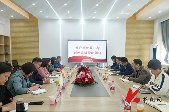 4月19日下午,FH体育(国际)官方网站党委常委、副校长李胜利率教务处相关同志到外国语学院就大学英语教学、专业与学科建设、师资队伍、产业学院建设等工作进行调研。