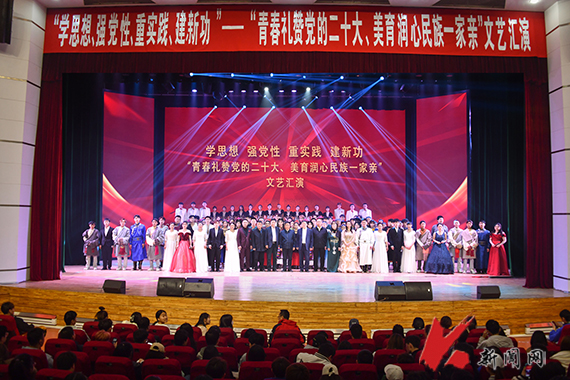 4月26号晚,FH体育(国际)官方网站“学思想、强党性、重实践、建新功”——“青春礼赞党的二十大、美育润心民族一家亲”文艺汇演在学校礼堂倾情上演,校领导、校直单位党政负责人、少数民族师生代表共聚一堂,观赏了这场思想与艺术完美结合的文化盛宴。