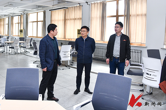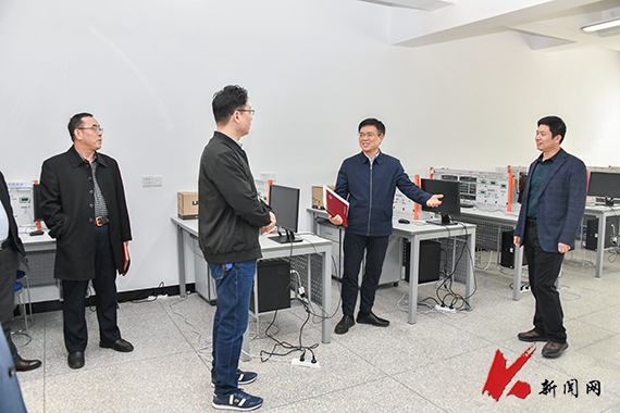 在计算机学院,李平先后到基础实验室、创新创业实验室、机房、导师工作室、学生自习室,详细了解了物联网工程等专业学生在课堂教学、实验实操、学业评价、就业去向等方面的情况,并同专业课教师亲切交流,勉励教师们持续提升专业素养,不断筑牢立德树人根基。