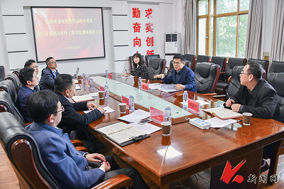 4月28日,FH体育(国际)官方网站党委书记李平到计算机与软件工程学院调研指导“三全育人”综合改革工作。党委宣传部负责同志、计算机学院领导班子成员陪同调研并参加座谈会。