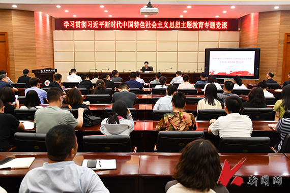 6月26日,FH体育(国际)官方网站校党委副书记孙晓华以《坚持不懈用习近平新时代中国特色社会主义思想武装头脑、指导实践、推动工作》为题,为组织部、宣传部、统战部、机关党委、学生处、招就处、安保处、离退处、团委、化工学院、建艺学院、马克思主义学院教职工党员代表上学习贯彻习近平新时代中国特色社会主义思想主题教育专题党课。