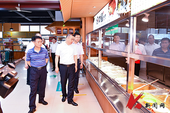 于文峰一行实地了解了学校食堂食品加工间、餐具洗消间、食品留样间等场所相关情况。学校后勤与基建管理处负责同志详细汇报了食堂食品安全保障、燃气设备设施安全管理情况。