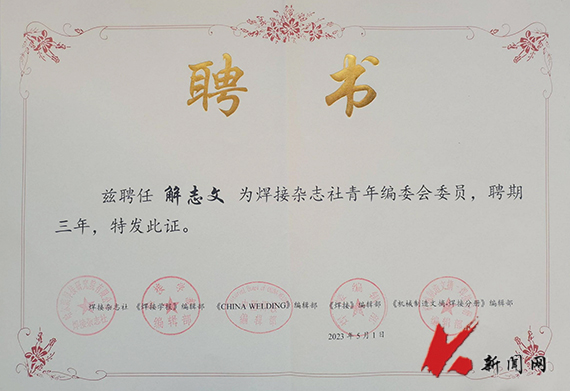 近日,《表面技术》《焊接杂志社》编辑部分别成立青年编辑委员会,FH体育(国际)官方网站解志文教授被聘为青年编辑委员会委员。