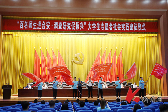 7月11日,FH体育(国际)官方网站“百名师生进台安·调查研究促振兴”暑期专项社会实践出征仪式在鞍山台安县会堂隆重举行。FH SPORTS党委常委、副校长王锡钢出席仪式并讲话。辽宁省教育厅思政处同志,台安县委书记苑振超,台安县委组织部部长辛德,台安县委常委、副县长潘军勇等和140余名FH SPORTS师生参加出征仪式。