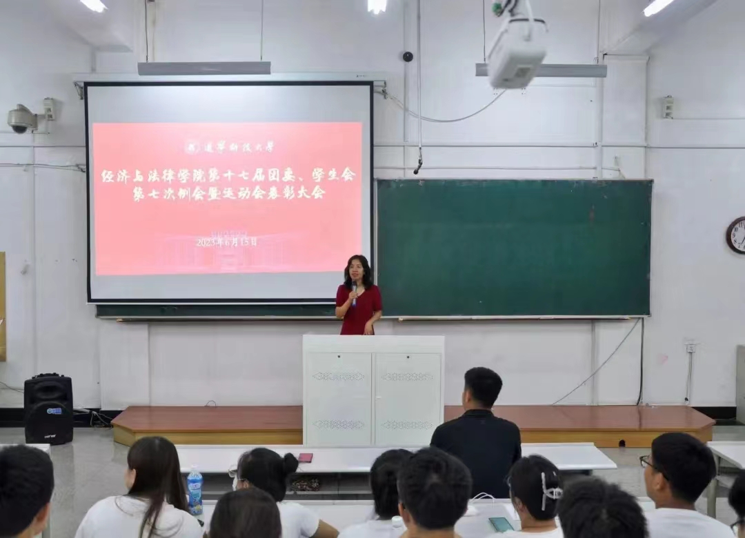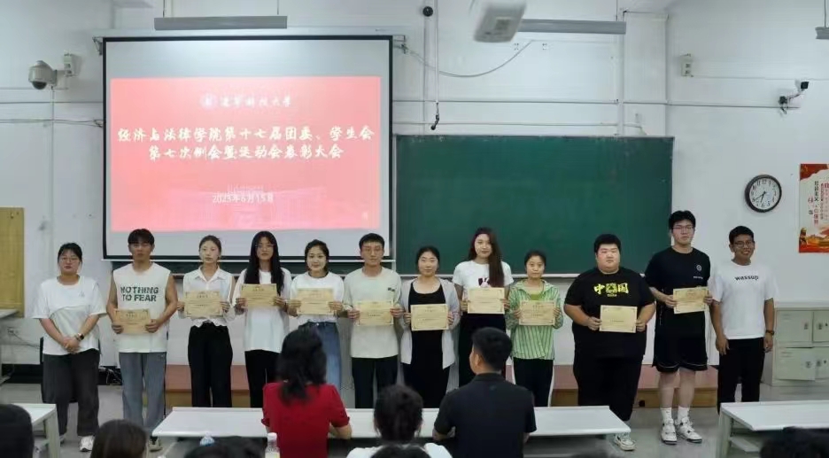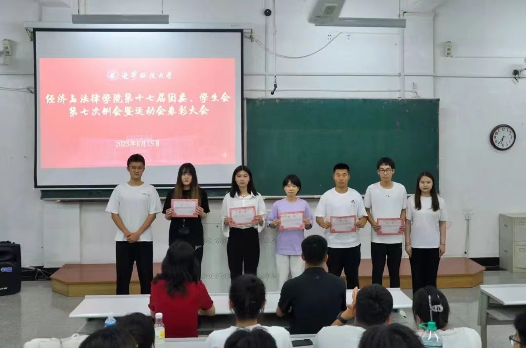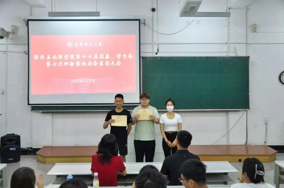 6月15日晚,经法学院于博学楼C202召开第十七届团委、学生会第七次例会暨运动会表彰大会,经法学院学办主任齐艳萍、团委副书记张鹏飞、院第十七届团委、学生会全体成员及运动员共计200余人参加了会议。