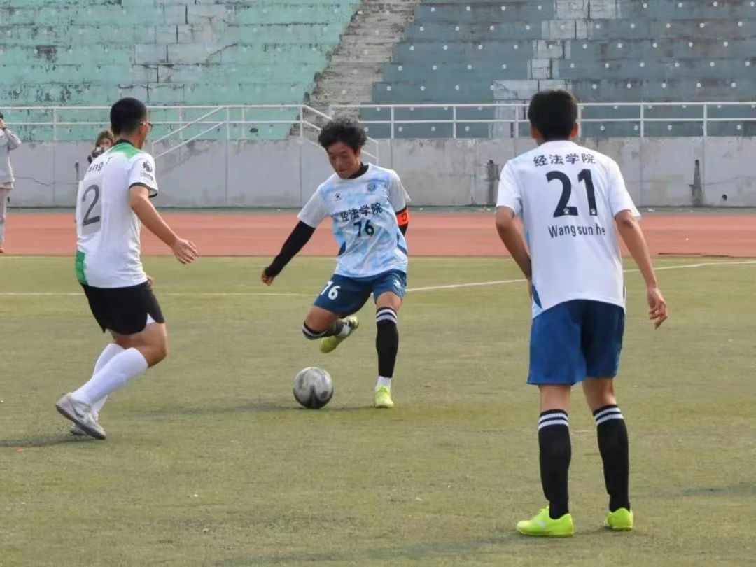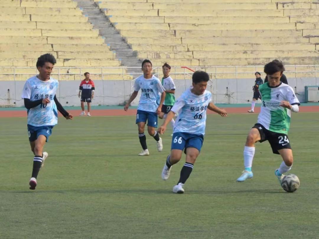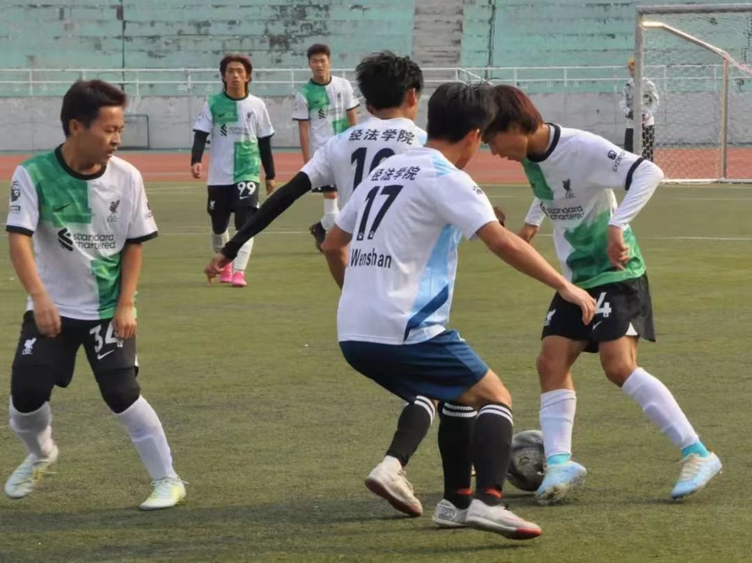 比赛场上,经法学院足球队员们全神贯注,配合默契,用有力的步伐与矫健的身姿尽情地展现着团队的力量与高超的球技。精妙的传球、凶猛的断球和漂亮的进球一次次将比赛气氛推向高潮。场外观众热情高涨,欢呼声、呐喊声让现场气氛不断升温。最终,经法学院足球队以3胜1平的成绩小组第一出线,随后以绝对优势挺进四强。