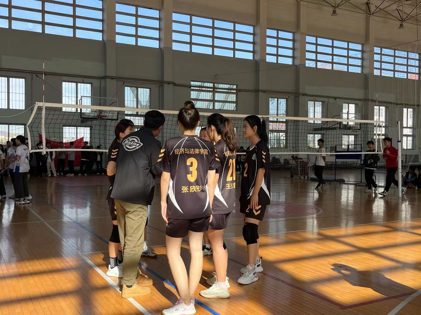 小组赛上,经法学院女子排球队队员们默契配合、相互鼓励,扣球、发球、一传、二传,每个环节都拼尽全力。每一场比赛结束后,队员们都互相加油打气,总结经验,准备下一场比赛。经过激烈的角逐,经法学院女子排球队一路披荆斩棘顺利入围四强。比赛场外观众们热情欢呼,为学院队员们加油打气。