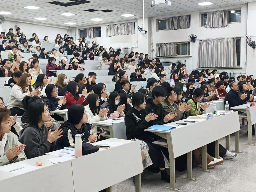 学院法律系主任蒋喆结合自身学习求职和海外维和的经历感受进行宣讲,引导学生珍惜机遇、把握当下,树立远大理想,热爱伟大祖国,用积极的态度和坚持不懈的意志克服成长道路上的种种困难。他通过汶川地震、电影《无问西东》中的实例,阐明了人生观、价值观对青年成长的重要作用,也让同学们更加深刻地认识到什么是爱国主义,激励同学们以饱满的热情和昂扬的斗志投入到学习和生活中,时刻以国家利益为重,他希望大家在成长道路上都能担当起时代重任,“心之所向,无问西东”。