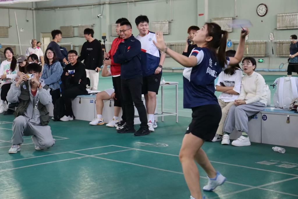 球馆内,比赛如火如荼的进行着,经法学院的羽毛球健儿们身姿矫健,每一次挥拍,都凝聚着智慧与力量,每一次接球,都来自长久的练习,所有的光芒,都来自不懈的努力,隔网对打,每一次博弈,都是一种青春的碰撞。他们全神贯注、动作敏捷,轻盈的跳跃、精准的扣杀、巧妙的救球,不断将比赛推向高潮。观众们热情洋溢,为选手们的精彩表现欢呼雀跃,现场气氛热烈非凡。
