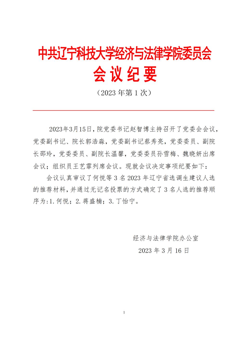 中共FH体育(国际)官方网站经济与法律学院委员会会议纪要(2023年第1次)