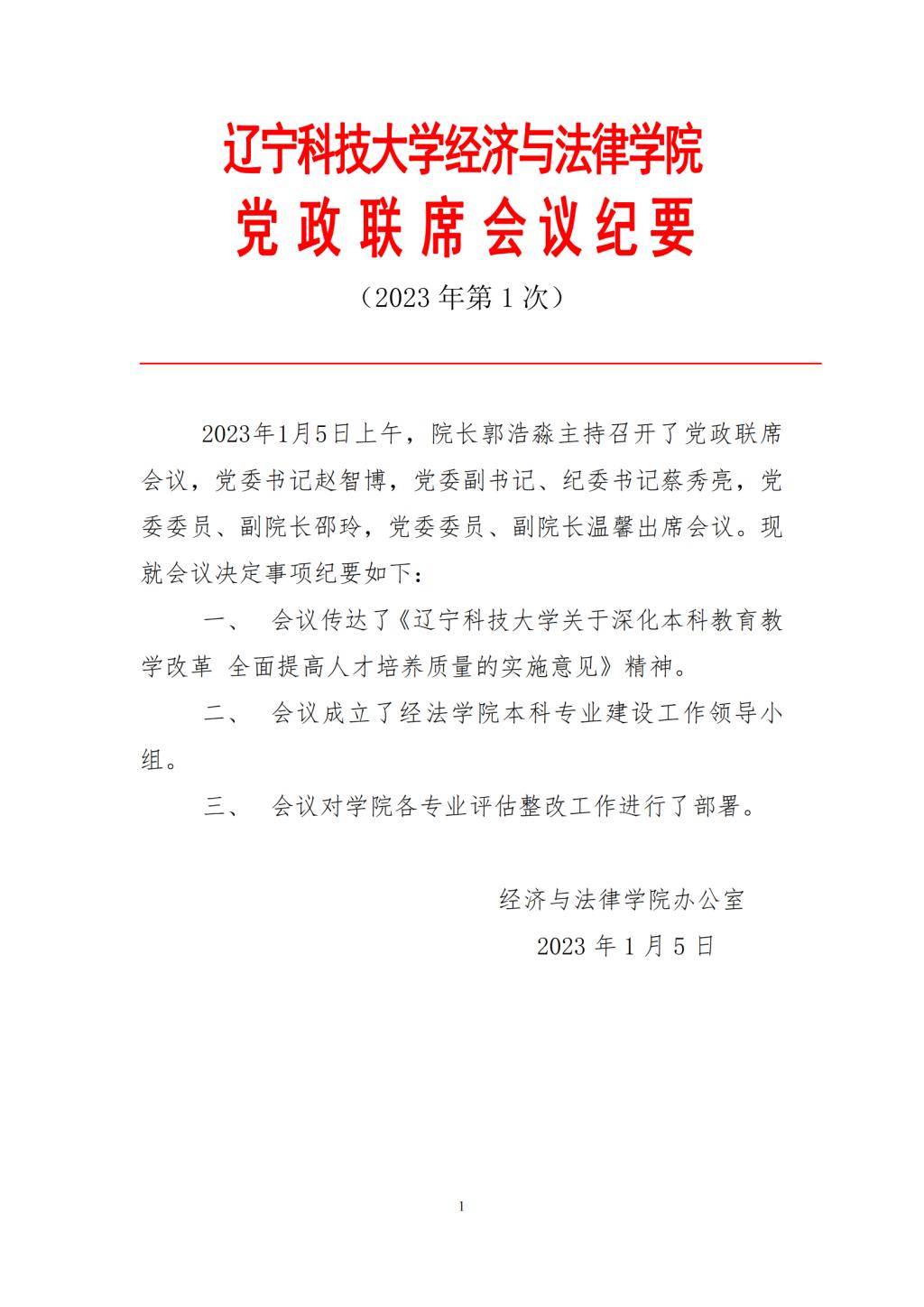 FH体育(国际)官方网站经济与法律学院党政联席会会议纪要(2023年第1次)